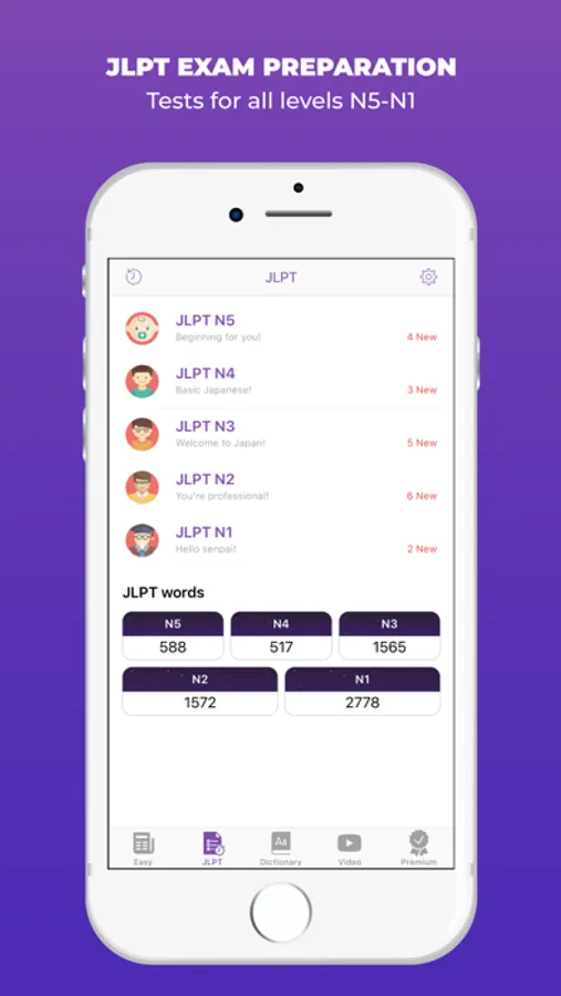 • JLPT mock test: Take 35+ JLPT mock tests with full levels N5-N1. Standard JLPT tests with structure like real JLPT exams.