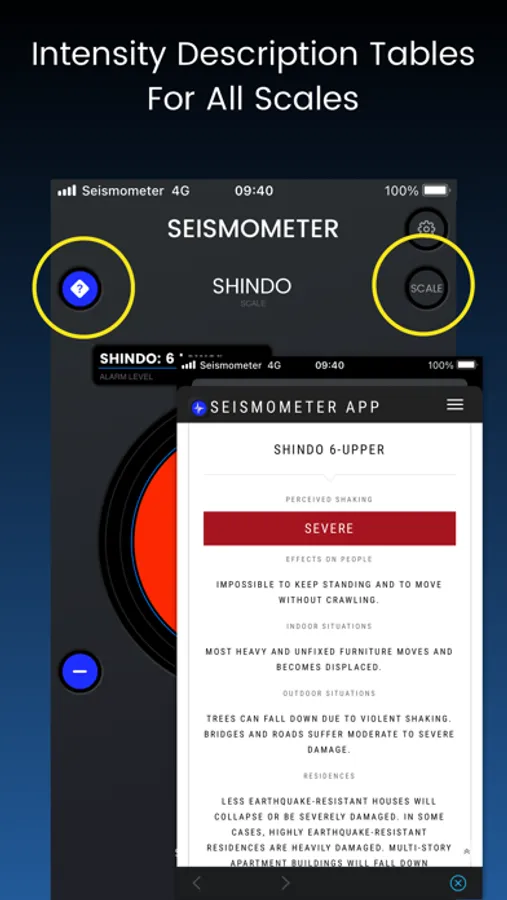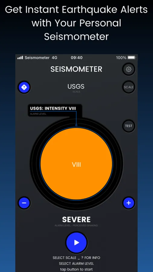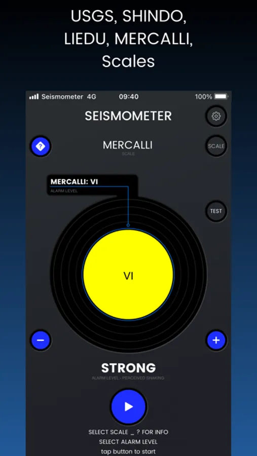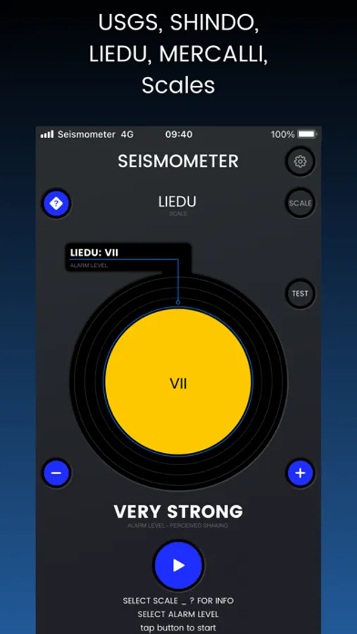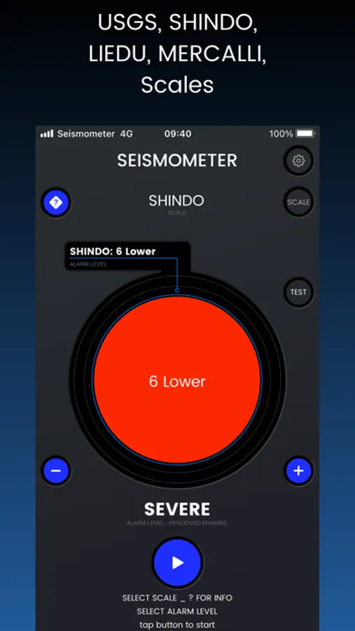 • Select Scale (Liedu, USGS, Shindo or Mercalli)