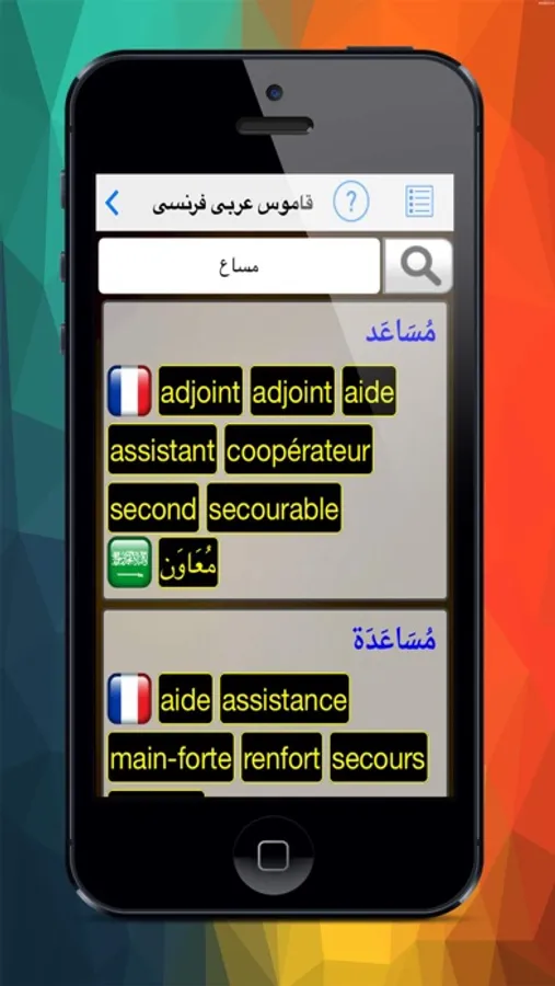 اسرع قاموس عربى-فرنسي للوصول الى ماتبحث عنة وبدون الحاجة الى التوصيل بالانترنت والافضل من ذلك انة مجانى وصغير الحجم