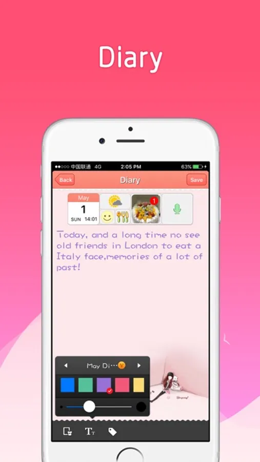 You can save all thoughts & feelings germinated in your mind with "Diary".