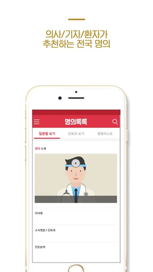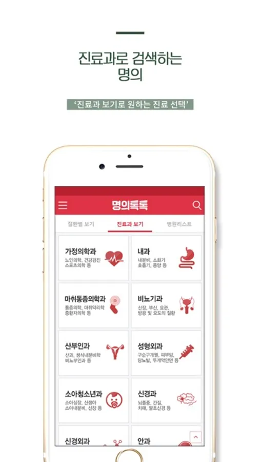 믿을 수 있는 병원과 의사로부터 검진 또는 치료를 받고 싶을 때, 명의톡톡에서 분야별 전문 명의를 찾아보세요