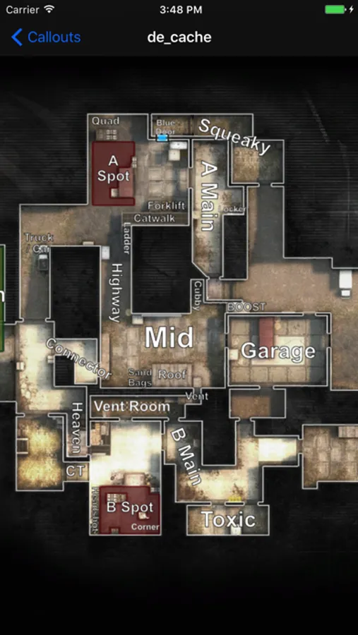 A CS:GO Guide with Callouts for all the common competitive maps and smoke grenades (more coming soon). You don't have to watch a video, you can easily use it ingame with accurate images.