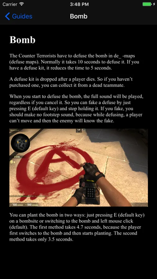 Additional a bomb timer and useful guides are in the app. For example the Economy of CT and Ts.