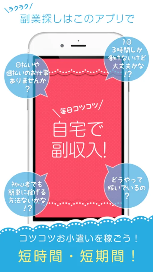 そんなあなたにぜひ見てもらいたい副業情報をまとめたアプリです。チャットレディーやメールレディーと言った王道の副業から、キャバクラなどのナイトワークに至るまで、本業の片手間に稼げるお仕事情報が満載です。