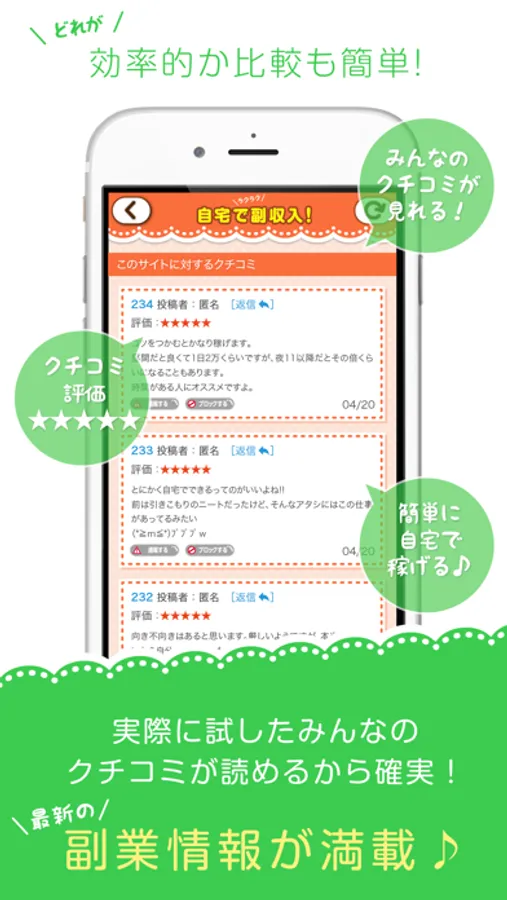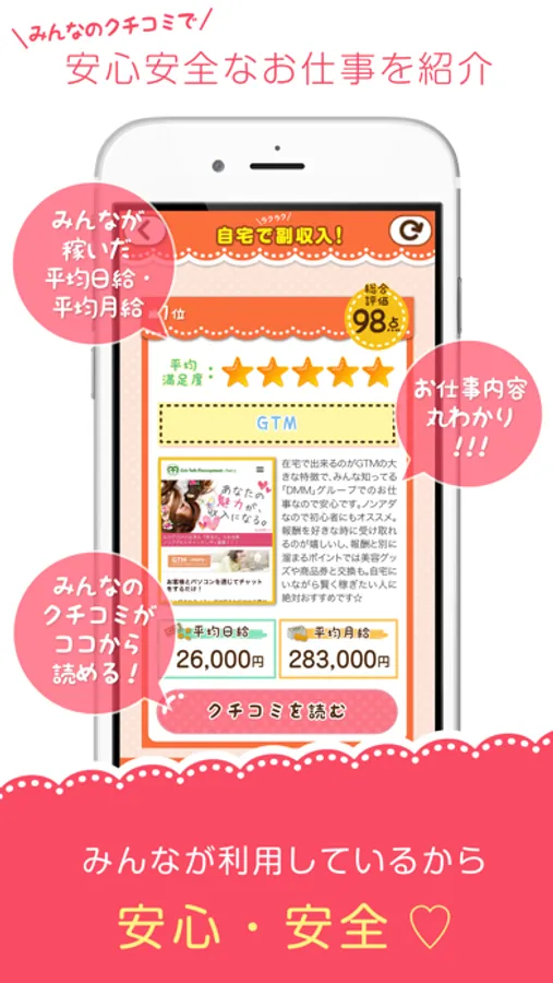 経験者のクチコミを参考に、「どんな風に」働いて「どうすれば」「いくらぐらい」稼げるのかが丸わかり!