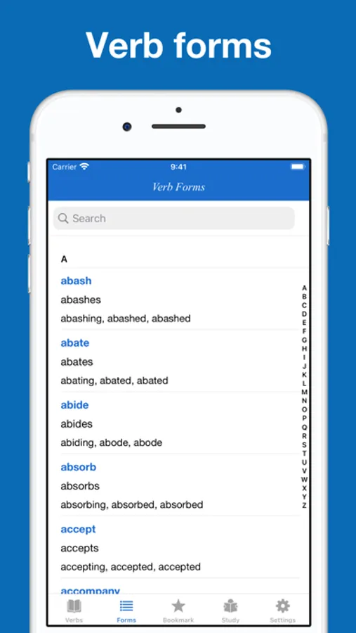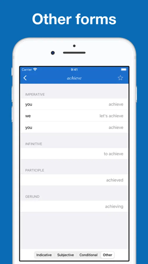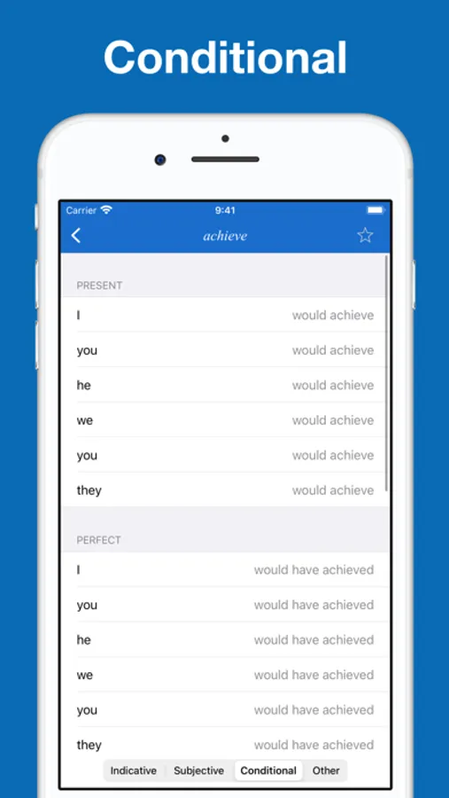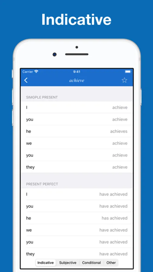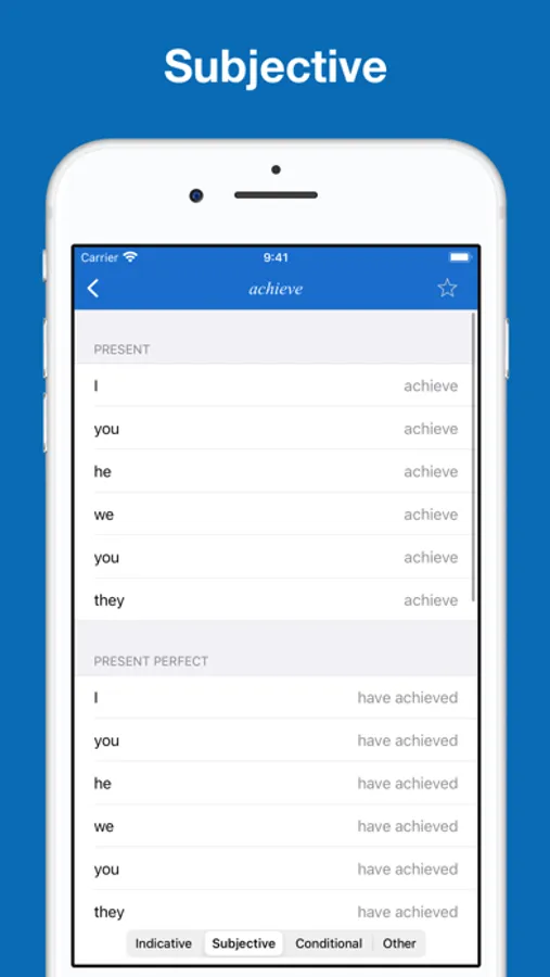 This app provides the digital tools and study material to help you learn how to conjugate over 2000 English verbs in all tenses.