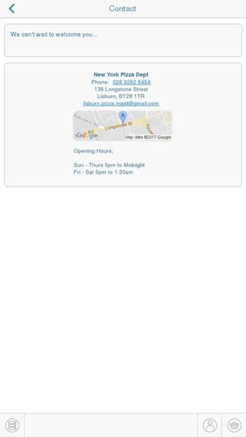 We are conveniently located on Longstone Street in Lisburn and offer a takeaway and delivery service. We are open from 5pm to Midnight Sunday to Thursday and 5pm to 1:30am on Fridays and Saturdays.