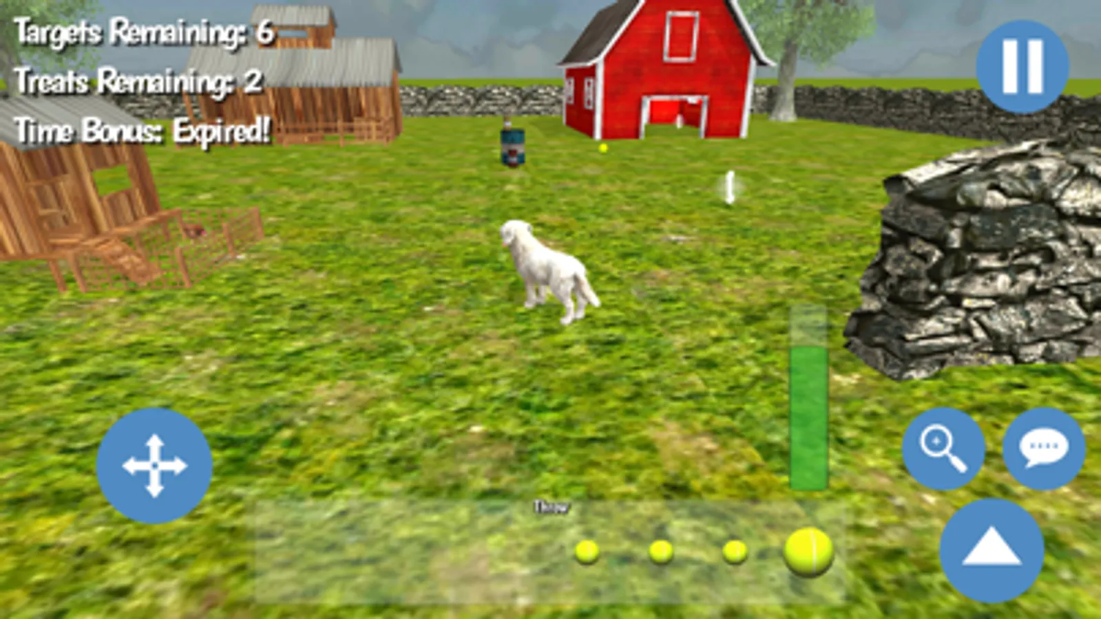 - Explore the play areas and team up with your pet to clear all the targets on each level by throwing balls, sticks, and frisbees.