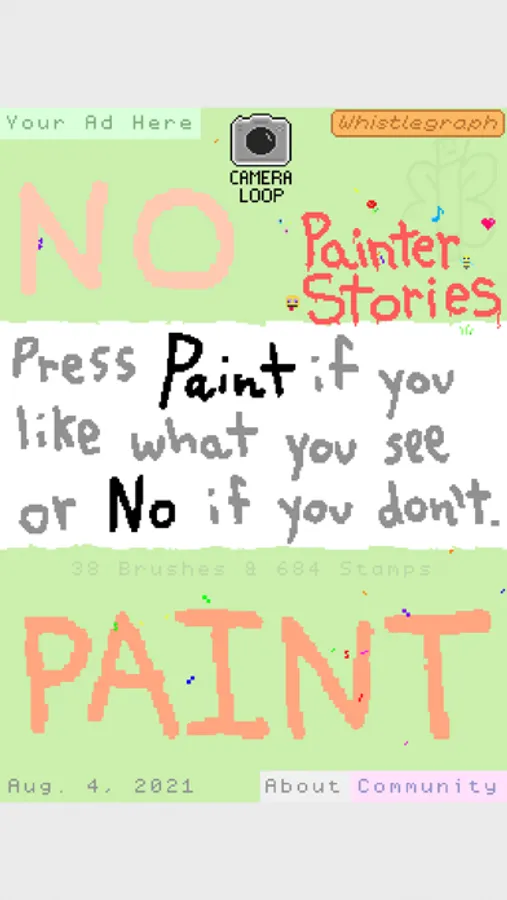 Press "Paint" if you like what you see or "No" if you don't! Move a finger on the painting to "Nudge" and tap the painting to pause, title, and save.