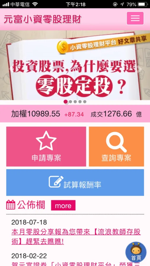 [利器二] 行動「i理財_小資零股理財平台」,小資族最佳投資利器,投資金額最低1,000元起任你選、委託日期每月每日任你挑,投資計畫更加彈性,報酬率試算讓您對投資更有感。