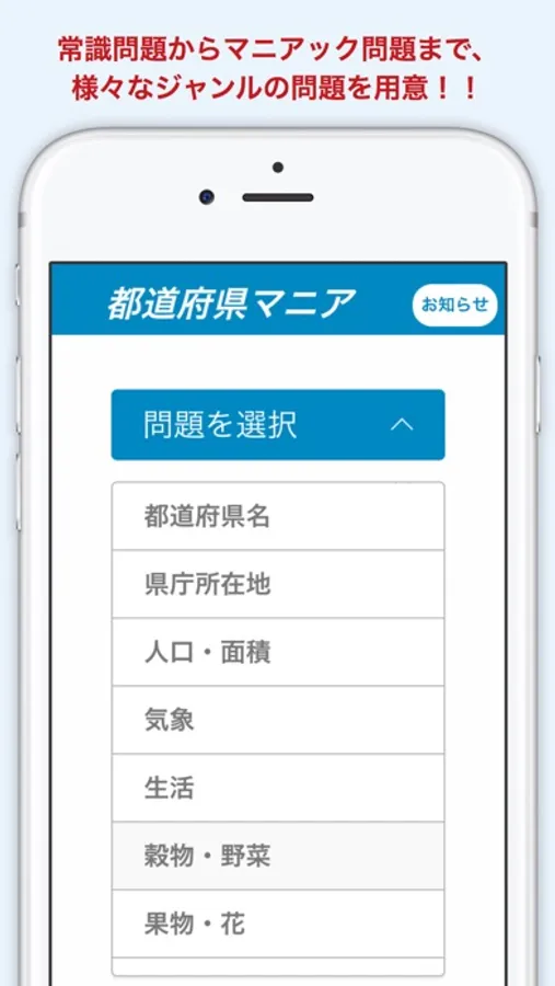 都道府県に関するクイズアプリ「都道府県マニア」です!