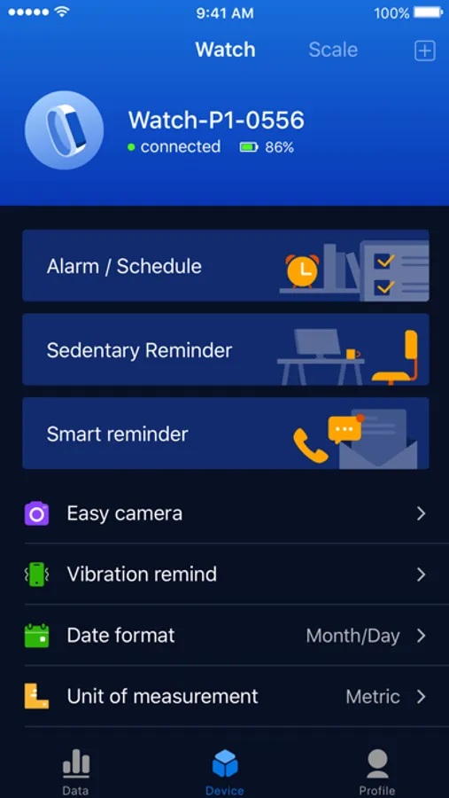• Sync your health and fitness data from bracelet using Bluetooth