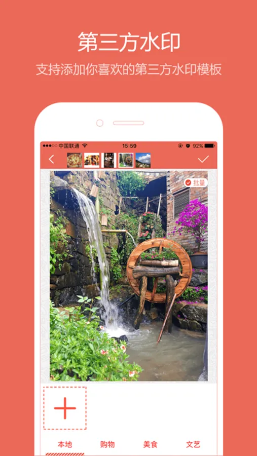 In addition to the official watermark template, you can also add your own design of third-party watermark, more personalized choice!