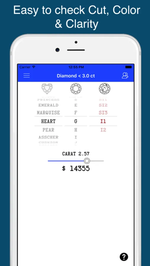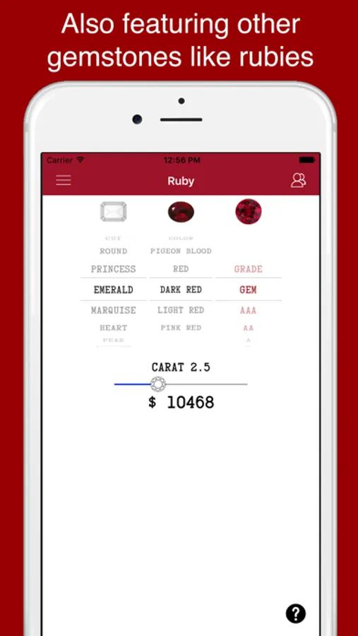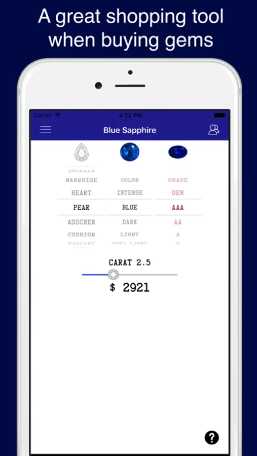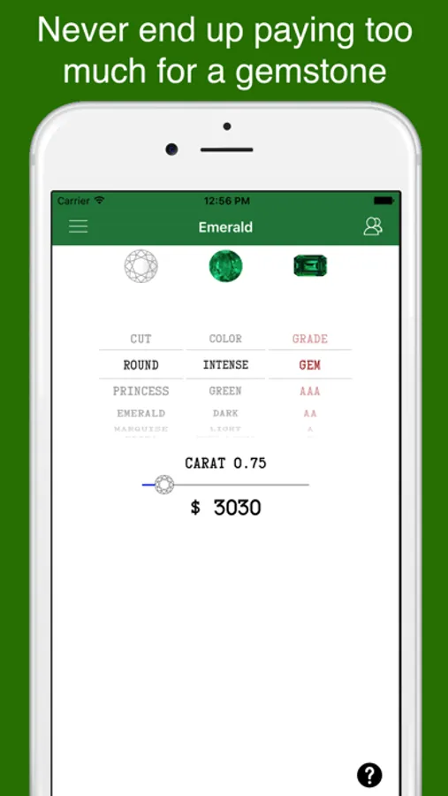 This app gives examples on cut, clarity, color, and grade. So you don't have to be an expert on gemstones or diamonds.