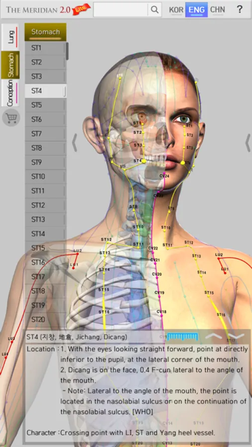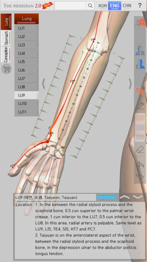 The Meridian uses a 3D human body model for Oriental Medicine. Because multiple oriental medical doctors and professors have been involved through the development, The Meridian can offer you not only a beautiful anatomy but also a great support for applying acupuncture and explain to your patients.