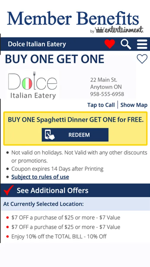 Simply login to your membership program, find the deal that interests you and show your mobile screen for redemption.