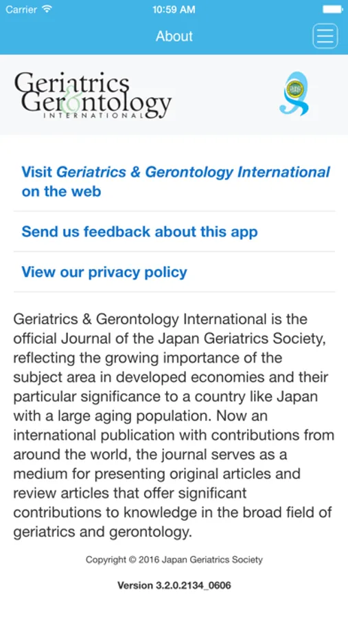 SUBSCRIBE IN THE APP: Annual Subscriptions (12 issues) for the iPad-only edition are available for $199.99 (US) per year. Payment is charged to your iTunes account after confirmation of purchase. Geriatrics & Gerontology International subscriptions automatically renew within 24 hours of the end of your subscription period for $199.99 (US) unless auto-renew is turned off at least 24 hours before the end of the subscription period. To turn off auto-renew, go to your iTunes account settings after purchase. Note that subscriptions cannot be cancelled during the term of the subscription, but you can still turn off auto-renew to prevent automatic renewal of your subscription. Note that any unused portion of a free trial period, if offered, will be forfeited when you purchases a subscription.