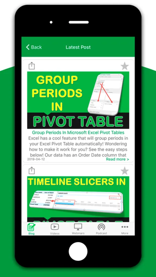 This application allows you to Favorite a blog tutorial so you can save & watch later as well as sign up to my Newsletter where you will receive free weekly Excel lessons on Formulas, Pivot Tables, Charts and Analysis, as well as get free access to my e-book: The Ultimate Excel Resource Guide!
