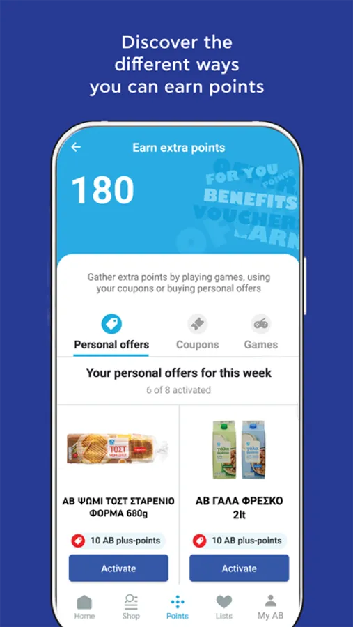 Activate offers with points from coupons, games, personal offers and discover other surprises depending on the profile you have selected.