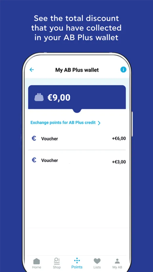 In the section My Savings in €, you can see all the discounts you receive through AB Plus and other offers with your purchases.