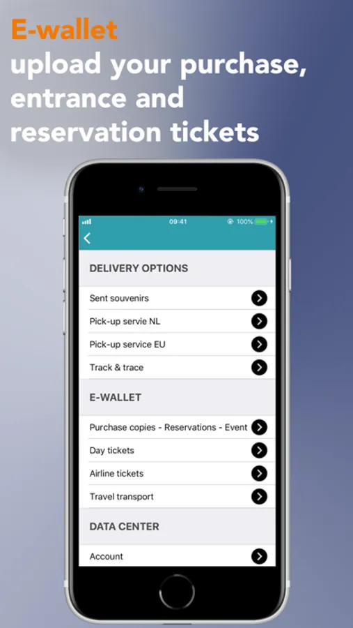 In the webshop you match household products with rental properties, and travel items with holiday bungalows or reserve entrance tickets for attractions. Use the match locator to match your delivery options across multiple purchases. In the menu you can also immediately track your packages using track and trace and save them directly in your e-wallet. In the multifunctional shopping cart you can manage, pay together and share with friends or family.