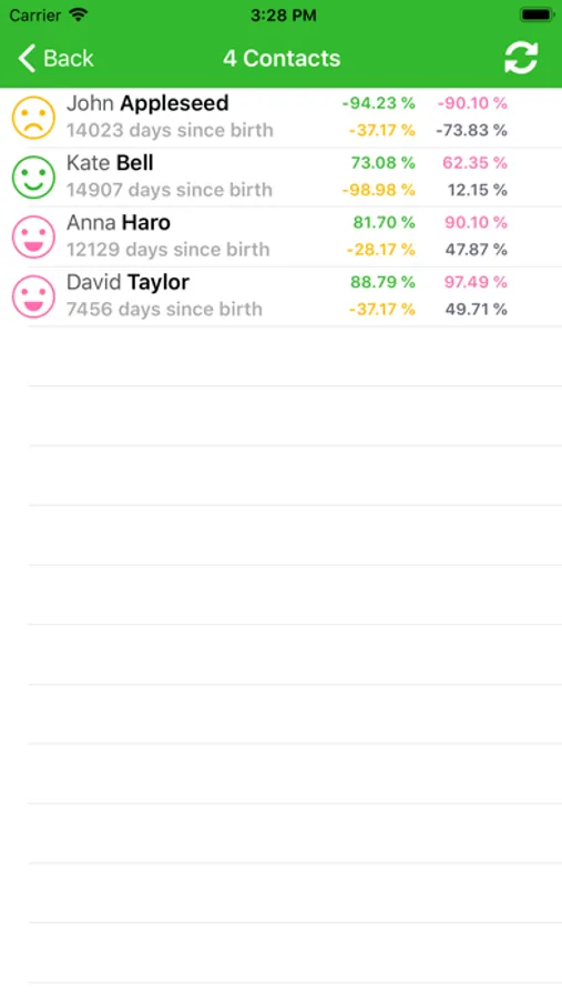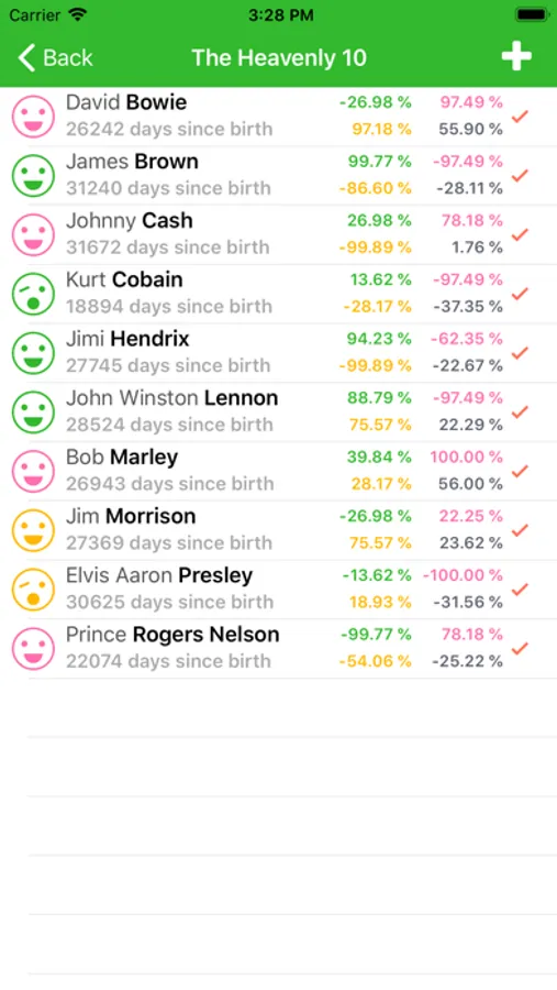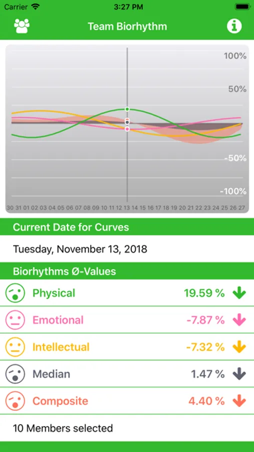 myTeamBiorhythm let's you visualize the Biorhythm for a selected Team at any given Date. Add your Team Members and select those, which might lead to the best Performance for the selected Date. Can be used to calculate your Families Values, or those of your Office Team, Soccer Team or any other Sports team or like in the demo data 'The heavenly 10' ;-)