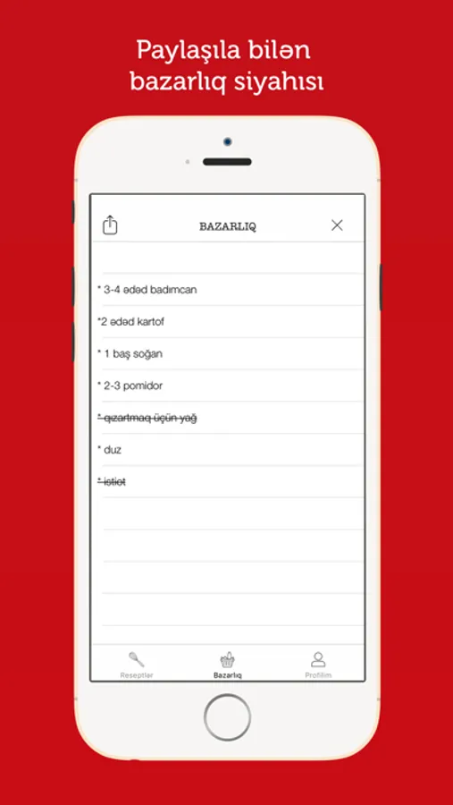 Artıq siz dәyәrli istifadәçilәrimizә daha yaxınıq. 1000-lәrlә resept tapmaq, paylaşmaq sizin ixtiyarınızdadır.Bәyәndiyiniz aşbazların reseptlәrini izlәyә bilәr, özünüz reseptlәrinizi paylaşa bilәrsiniz.