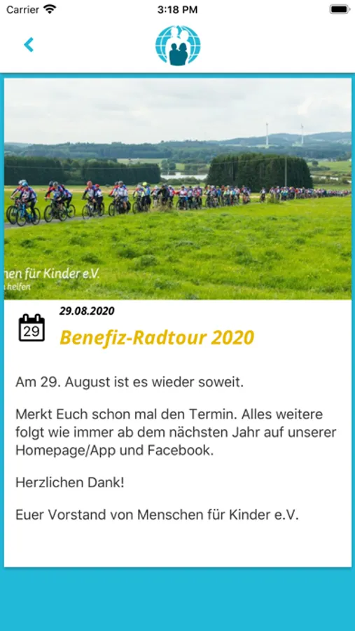 Die offizielle Menschen für Kinder e.V. App. Mit der MfK-App erfährst du von den neuesten Aktivitäten des Vereins und seinem sozialen Engagement. Du erhältst einen Gesamtüberblick über den Verein, und seine aktuellen Termine.