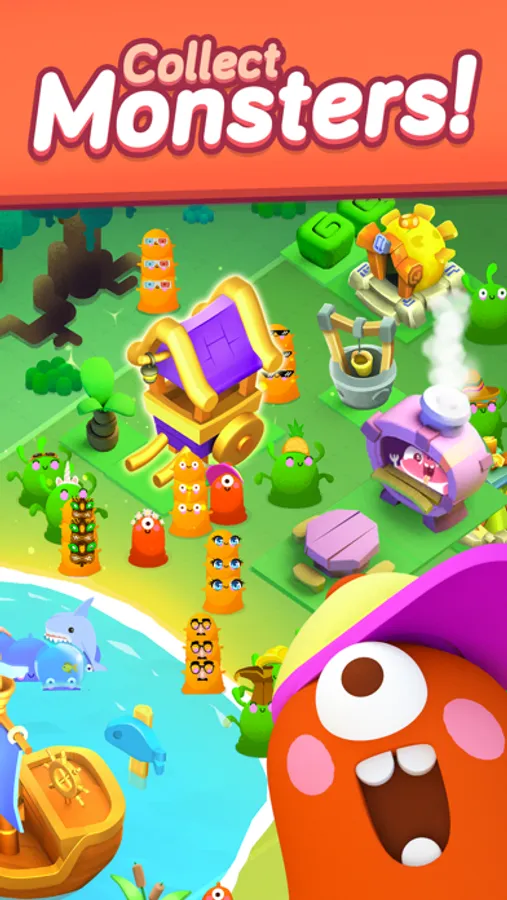 Face monster puzzles and hatch friendly monsters as you match your way through 100 colorful puzzle levels! All it takes is two or more blocks of the same color to make a match. Easy, right? Not so fast... It’s not as easy as it sounds! You will need puzzle-solving talent to clear the levels with only a limited number of moves! That’s where your monster friends come in. Each color monster will help you in a different way. Feed them blocks and they’ll reward you in return! There is a village to build! Chef is lonely and needs some friends. Be sure to take some time out from puzzling to build your new friends a village fit for a ... well, a *monster*. You’ll make Chef happy and your monsters will have a home! Each monster has a house matching his or her color, so build them all and watch your village thrive! It’s also possible to find monsters wearing special hats... can you collect them all?