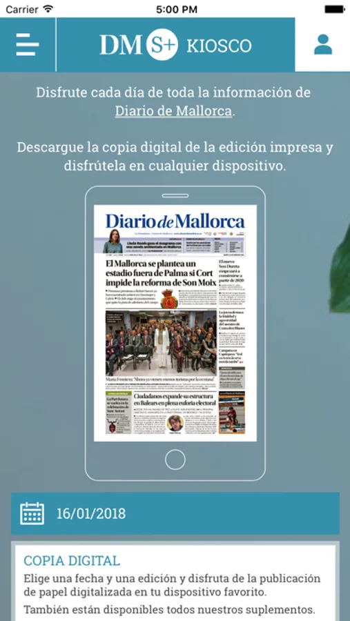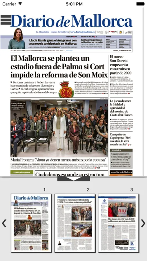 Acceso a la edición de papel del Diario de Mallorca. Publicación diaria de la versión digital de las ediciones impresas. Incorporación de elementos multimedia y acceso a últimas noticas por RSS.