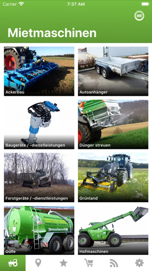 Mit der Mietmaschinen-App können Sie rund um die Uhr verschiedenste Landtechnik selber reservieren. Für die Bodenbearbeitung, Gülleausbringung, Grünland, Transport und vieles andere können Sie landwirtschaftliche Maschinen mieten.