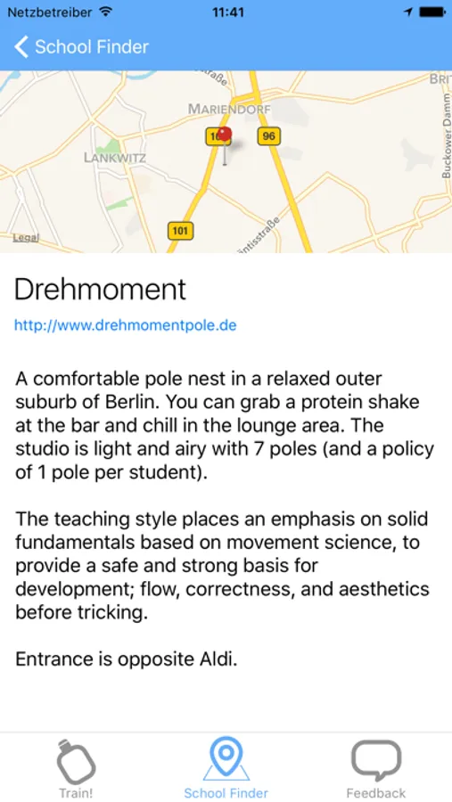 • Discover the nearest pole venues wherever you are. From huge Berlin converted warehouses, to beachside Caribbean pole schools, you'll find something new near you! Convenient information, reviews, and directions will take you straight there.