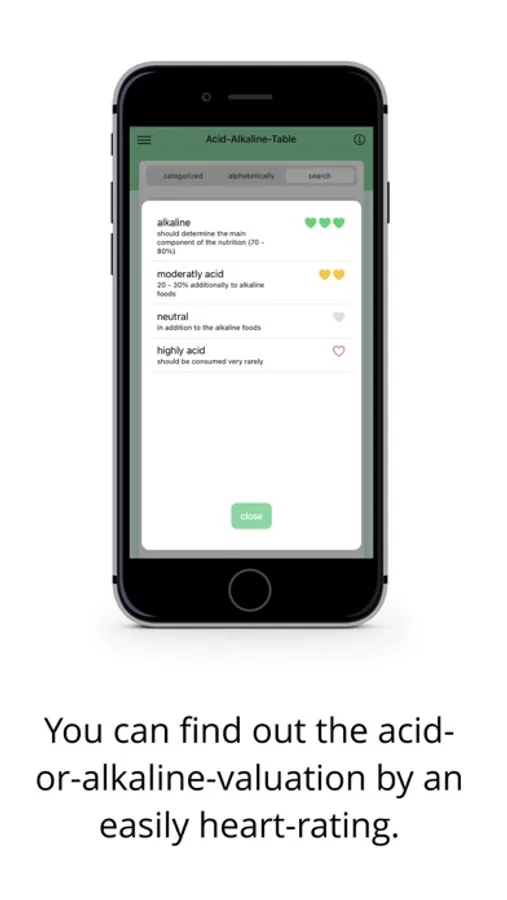 The authors of this app accepted the challenge of creating a table based on the following holistic rules for the evaluation of foods in terms of alkaline nutrition: