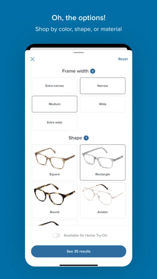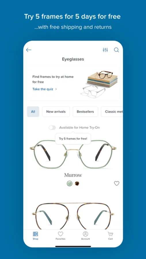 • Order 5 frames to try for free with our Home Try-On program