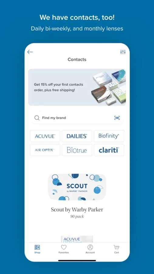 • Try or shop Scout, our very own brand of daily contact lenses