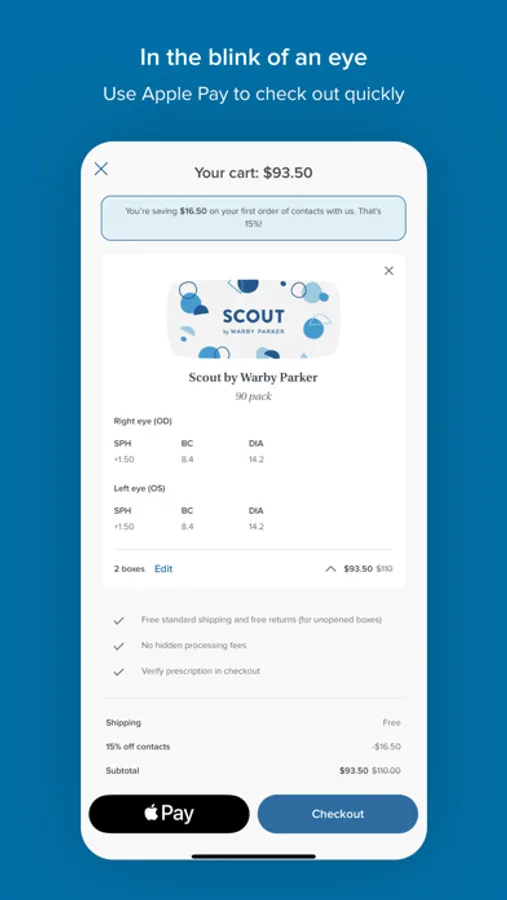 Our app is the easiest way to shop for Warby Parker eyeglasses, sunglasses, and contacts. Our eyeglasses start at $95 (prescription included!), and free shipping and returns are included with every order.