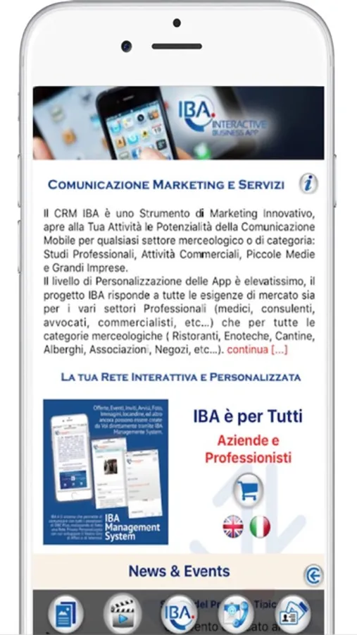 IBA è un gestionale che permette di creare una propria Rete Interattiva, Personalizzata e Digitale di Contatti, utilizzando smartphone e tablet. Con IBA si offre a qualsiasi attività le Potenzialità della Comunicazione Mobile, da Visibilità, Prestigio e Valore al Brand.