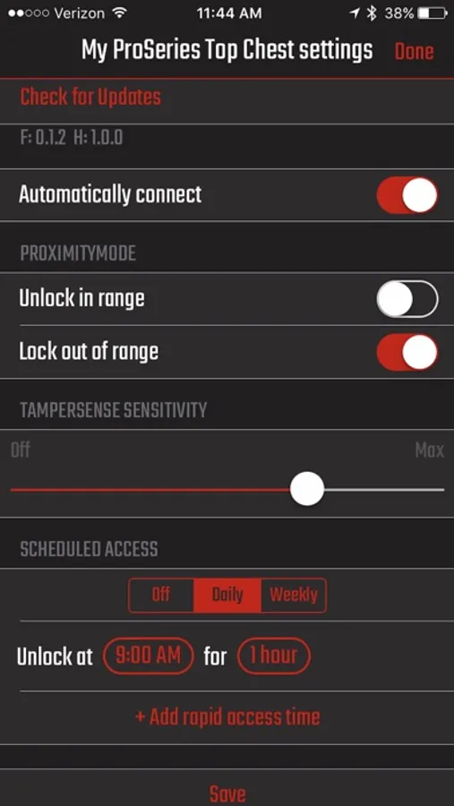 SMART LOCK Rapid Access mode also allows you to schedule a convenient time for your tool chest to lock or unlock when you are within range.