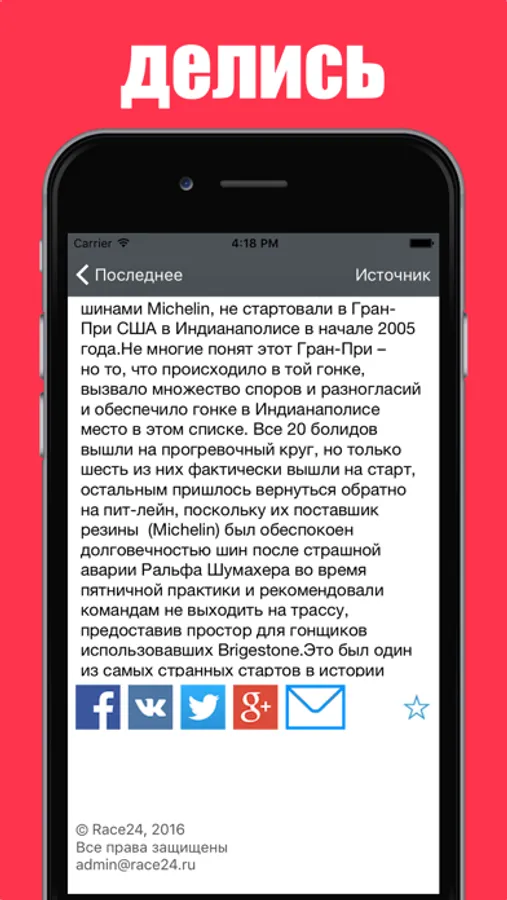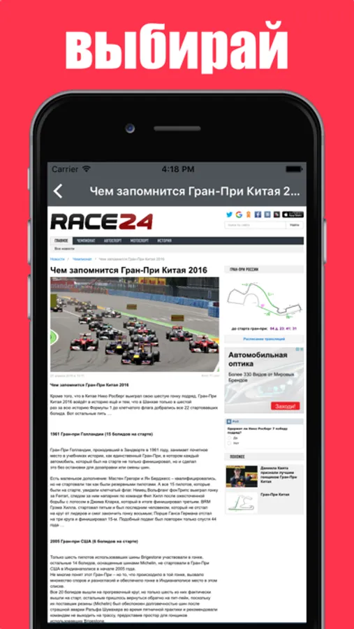 Программа для просмотра новостей сайта «RACE24.ru».