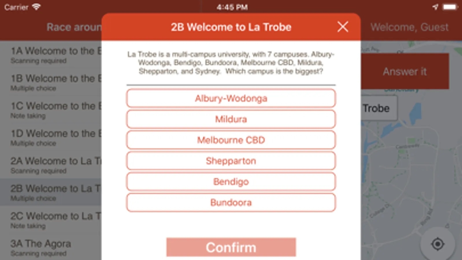 Besides the codes, the app also provides students with different kinds of questions such as multiple choices and true or false that asking about the POIs detail information in order to highlight any special or interesting features, so that students are able to remember them since they find the answers by themselves!