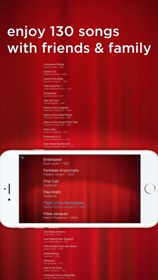 Just tap anywhere to play the next notes of the song. It's the easiest way to play famous classical works! Try to see if you can figure out the rhythm on your own. Perform for your friends, and have them guess. Is it Beethoven? Chopin? Mozart? :-)