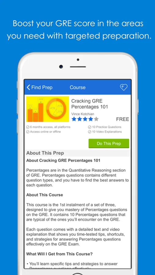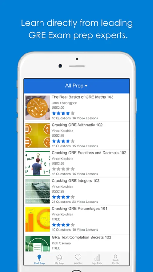 PrepEd is the only app that connects you directly to leading GRE Exam experts. Get instant access to courses from the world’s best GRE exam-prep teachers. The best teachers means the best results on your GRE exam.