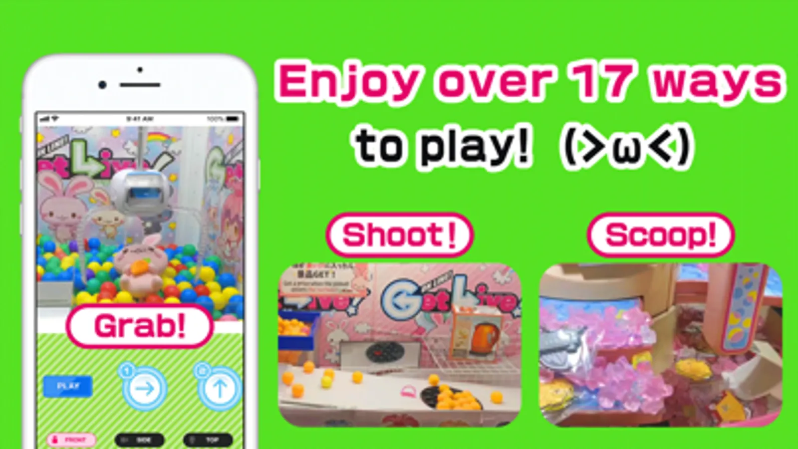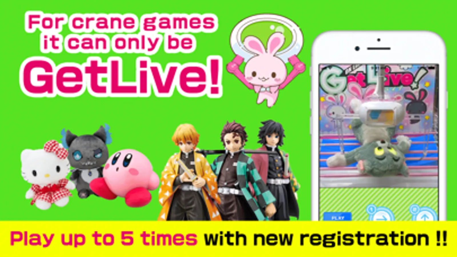 GetLive is an online game application with which you can play crane games in arcades anytime and anywhere.