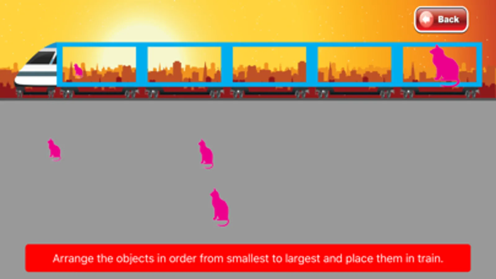 9). Here child learns the difference in sizes of various objects.This activity asks the child to arrange the objects in order of their sizes. Repeat this two three times.