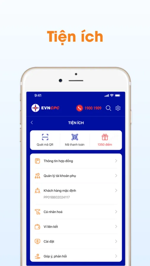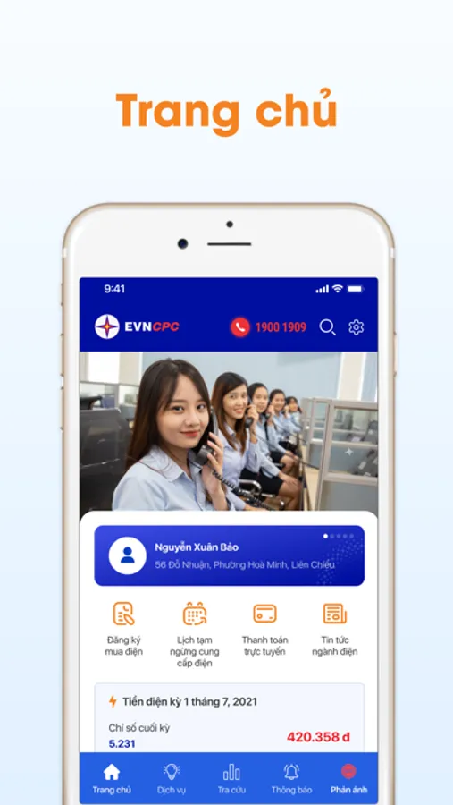 Thông báo: Hệ thống sẽ chủ động gửi tin nhắn xuống ứng dụng khi có thông báo về tiền điện, lịch cắt điện, sự cố mất điện, ...