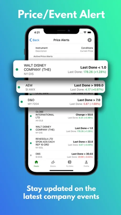 • Keep track of stock prices across US, SG, HK, MY stock markets and exchanges: NYSE, NASDAQ, CBOE, SGX, BURSA, HSI