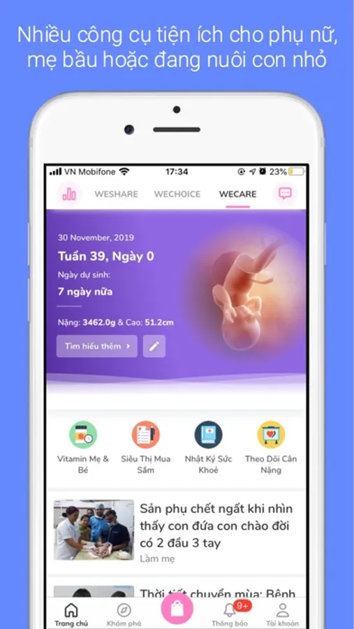 Đặc biệt riêng với chị em phụ nữ, WECARE cung cấp các tiện ích cực kỳ hữu ích, được nhiều người tin tưởng sử dụng theo dõi lịch chu kỳ kinh nguyệt, tính ngày rụng trứng, xác định ngày dễ thụ thai, theo dõi thai kỳ, lịch xét nghiệm khám thai và hỏi đáp chia sẻ kinh nghiệm thai sản, nuôi con, tự chăm sóc sức khoẻ bản thân.