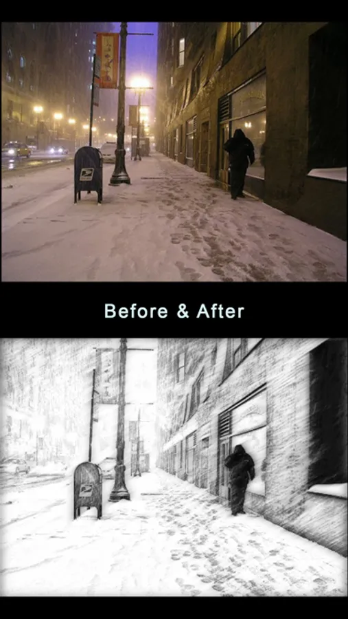 The Sketch My Pic app lets you turn your photo into a colored or black and white sketch. There are 7 sketch effects to choose from. The effects are realistic and professional looking. No internet connection is required!