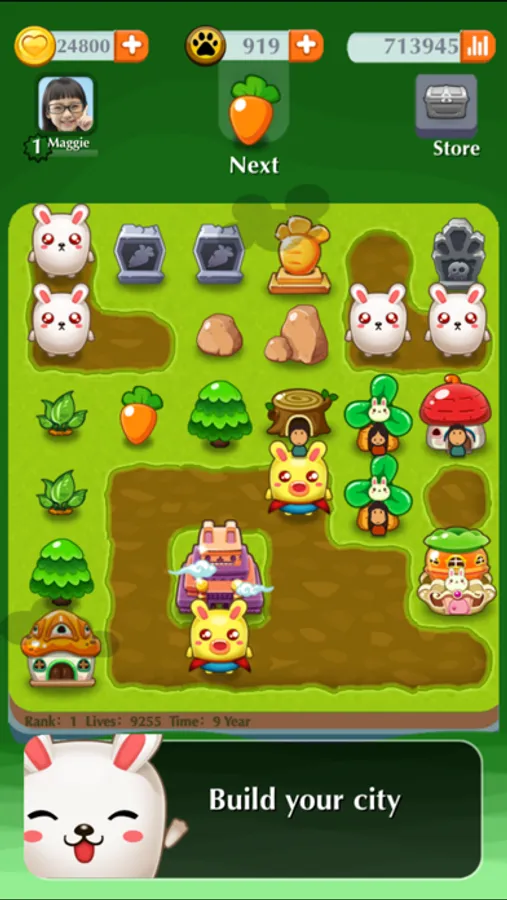 In the boundless sea, there is one small island, called rainbow town. On the island, the residents are often disturbed by the bears and become less happy with their lives. Until one day, you come the island as the new mayor. You are bound to bring the people happy life. As mayor, you are assigned some kind of magic, when the same level of three or more objects match together, magic will work on, high-level items will appear.