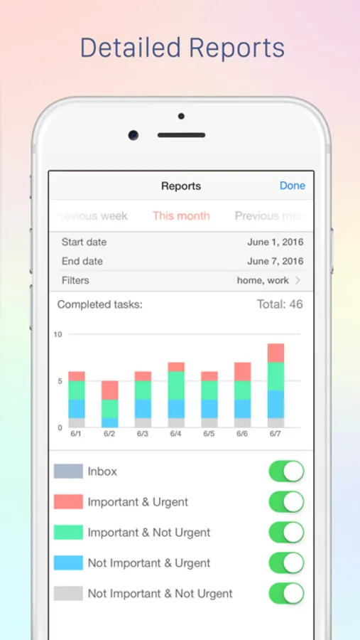 - Use the “Inbox” section for tasks which are needed to be sorted by quadrants